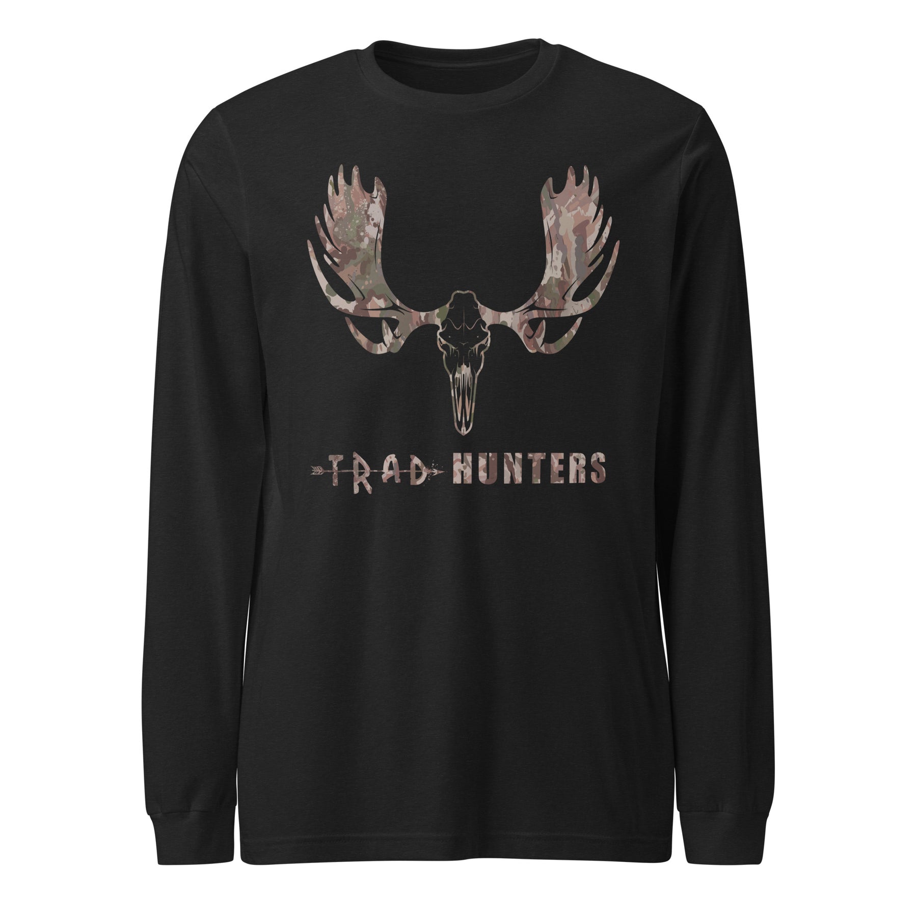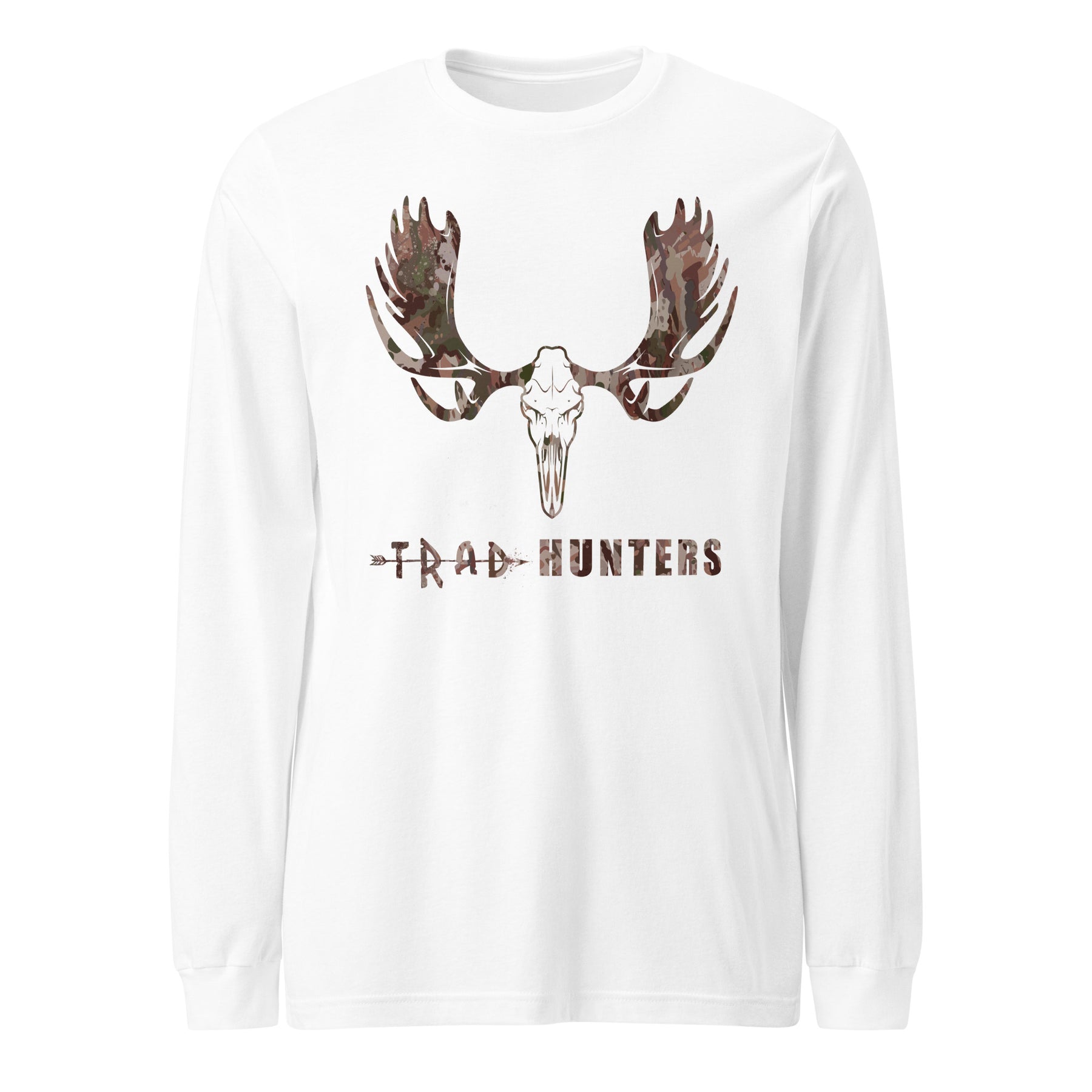 Built for the in-between days — too cold for a tee, too mild for a hoodie. The Trad Hunters Camo Crest Long Sleeve carries the same moose skull emblem that’s become a mark of the brand: simple, rugged, and rooted in the northern wild.